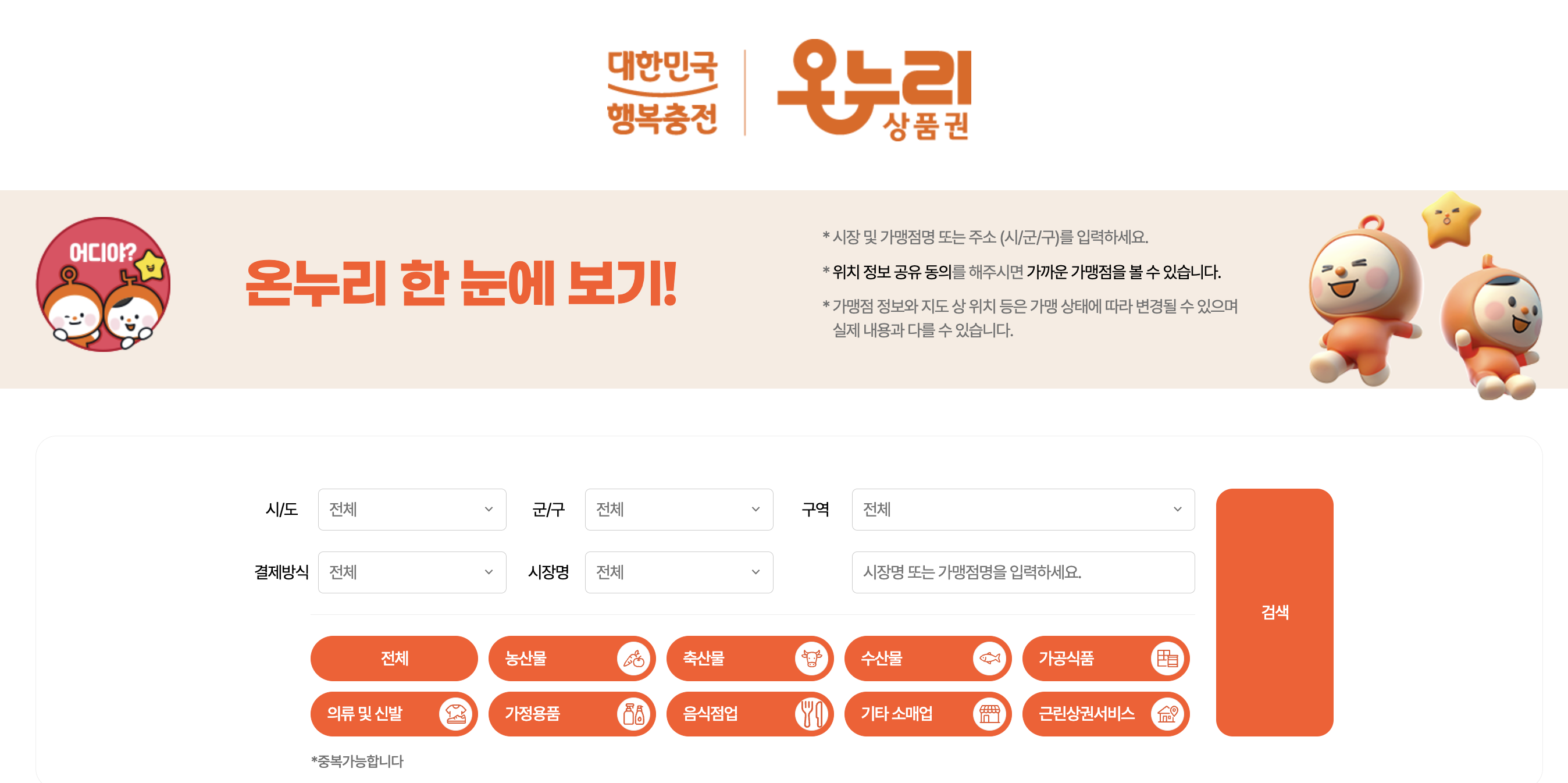온누리 한 눈에 보기: 온누리상품권 공식 홈페이지에서 전국 사용처를 확인하세요.