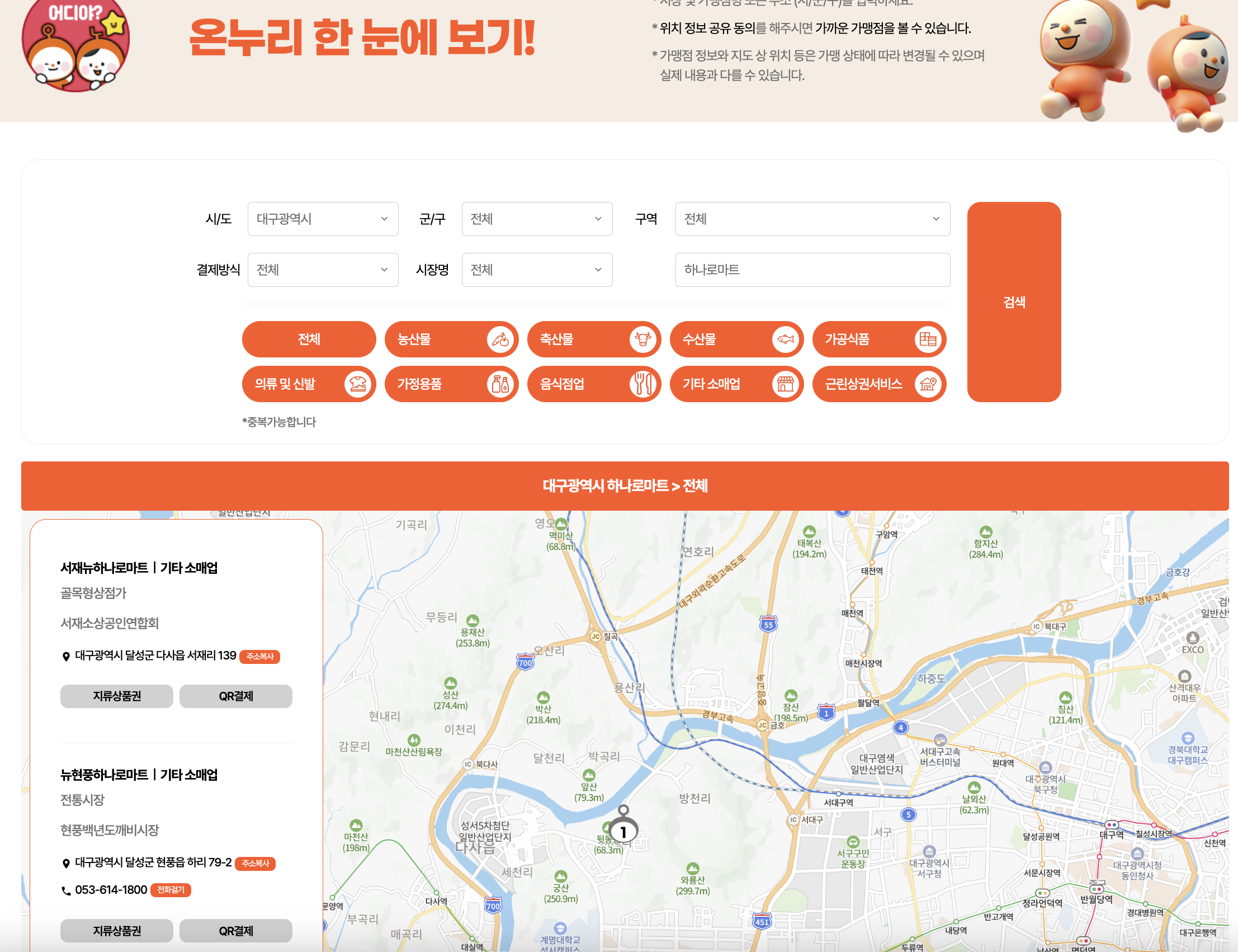 대구광역시 하나로마트 사용처 예시