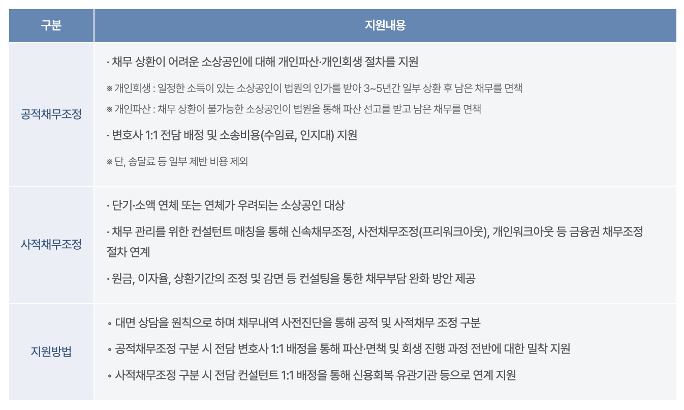 | 지원내용 | 사업정리 컨설팅 + 재기장려금 + 점포철거비 |
