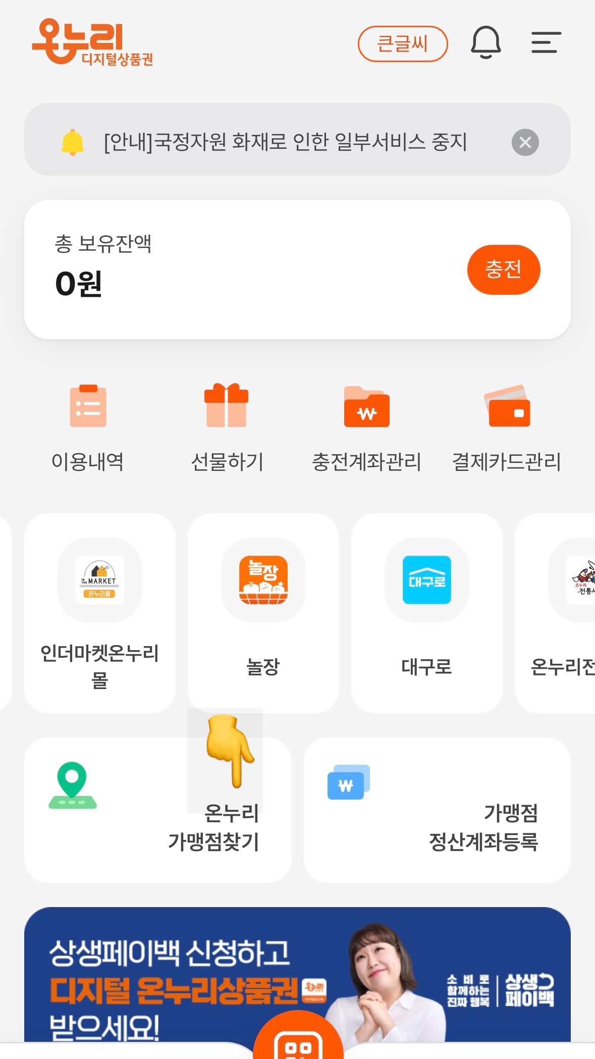 온누리상품권 기반 앱에서 사용 가능